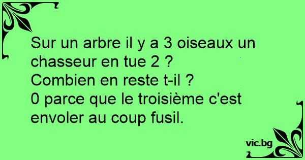 Sur un arbre il y a 3 oiseaux un chasseur en tue 2 ?