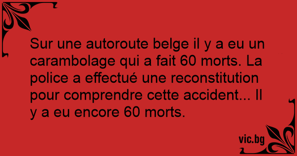 Sur une autoroute belge il y a eu un carambolage qui a fait 60 morts. La police a effectué une reconstitution pour comprendre cette accident... Il y a eu encore 60 morts.