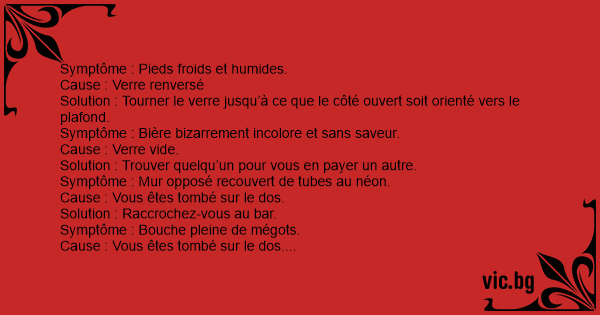 Symptôme : Bière sans goût, le devant de votre chemise est mouillé.