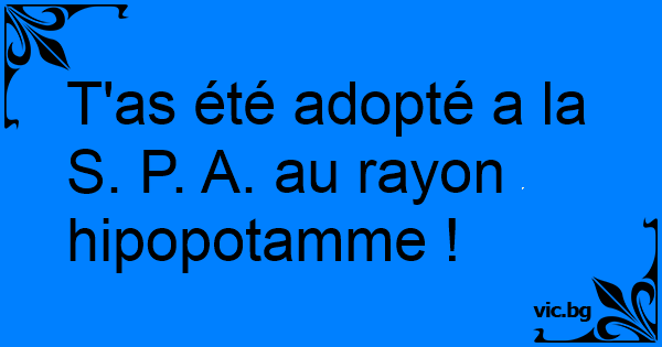 T'as été adopté a la S. P. A. au rayon hipopotamme !
