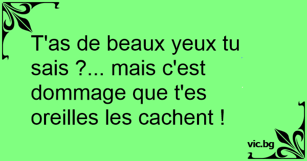 T'as de beaux yeux tu sais ?... mais c'est dommage que t'es oreilles les cachent !