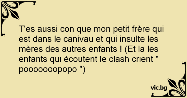 T'es aussi соn que mon petit frère qui est dans le canivau et qui insulte les mères des autres enfants ! (Et la les enfants qui écoutent le clash crient " pooooooopopo ")