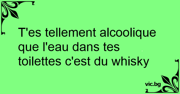 T'es tellement alcoolique que l'eau dans tes toilettes c'est du whisky
