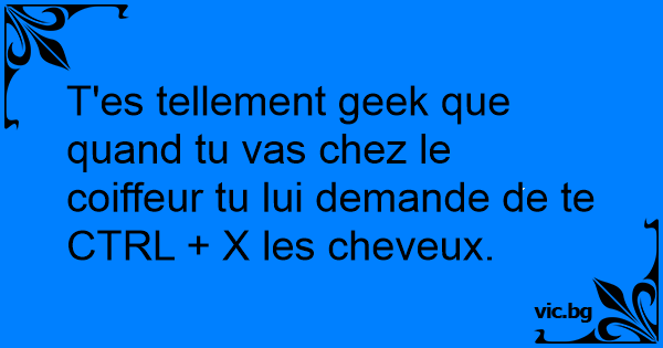 T'es tellement geek que quand tu vas chez le coiffeur tu lui demande de te CTRL + X les cheveux.