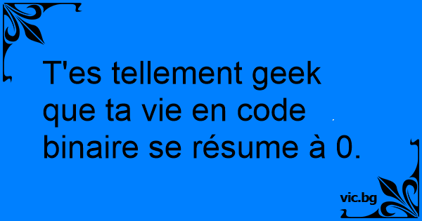 T'es tellement geek que ta vie en code binaire se résume à 0.