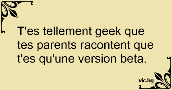 T'es tellement geek que tes parents racontent que t'es qu'une version beta.