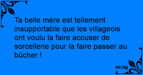 Ta belle mère est tellement insupportable que les villageois ont voulu la faire accuser de sorcellerie pour la faire passer au bûcher !