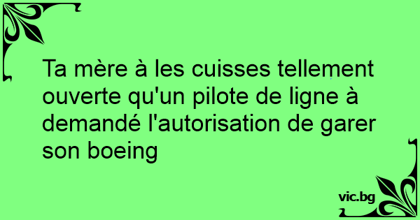Ta mère à les cuisses tellement ouverte qu'un pilote de ligne à demandé l'autorisation de garer son boeing