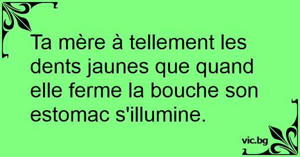 Ta mère à tellement les dents jaunes que quand elle ferme la bouche son estomac s'illumine.