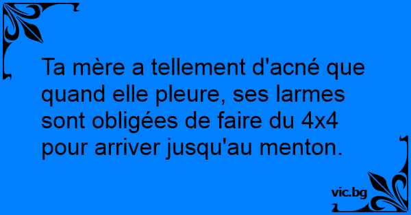 Ta mère a tellement d'acné que quand elle pleure, ses larmes sont obligées de faire du 4x4 pour arriver jusqu'au menton.