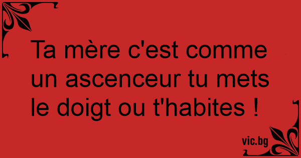 Ta mère c'est comme un ascenceur tu mets le doigt ou t'habites !