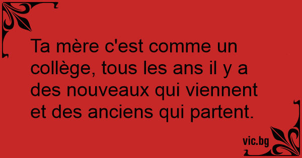 Ta mère c'est comme un collège, tous les ans il y a des nouveaux qui viennent et des anciens qui partent.