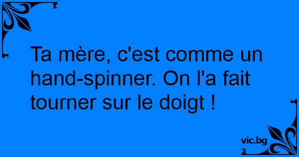 Ta mère, c'est comme un hand-sрinnеr. On l'a fait tourner sur le doigt !