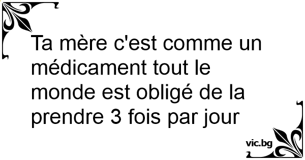 Ta mère c'est comme un médicament tout le monde est obligé de la prendre 3 fois par jour