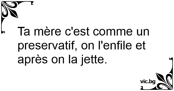 Ta mère c'est comme un preservatif, on l'enfile et après on la jette.
