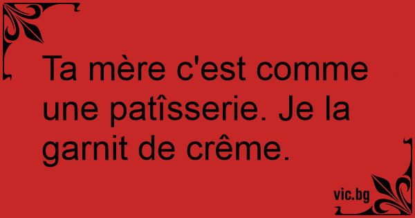 Ta mère c'est comme une patîsserie. Je la garnit de crême.