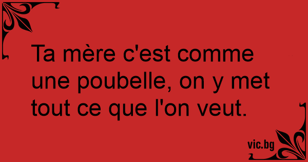 Ta mère c'est comme une poubelle, on y met tout ce que l'on veut.