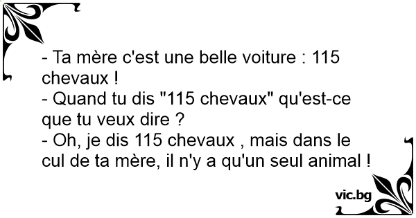 - Oh, je dis 115 chevaux , mais dans le cul de ta mère, il n'y a qu'un seul animal !