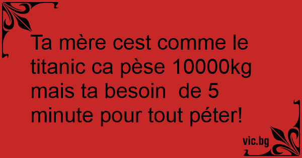 Ta mère cest comme le titanic ca pèse 10000kg mais ta besoin de 5 minute pour tout péter!