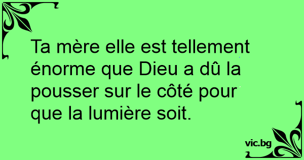 Ta mère elle est tellement énorme que Dieu a dû la pousser sur le côté pour que la lumière soit.