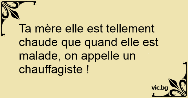 Ta mère elle est tellement chaude que quand elle est malade, on appelle un chauffagiste !