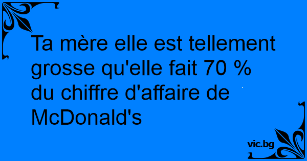 Ta mère elle est tellement grosse qu'elle fait 70 % du chiffre d'affaire de McDonald's