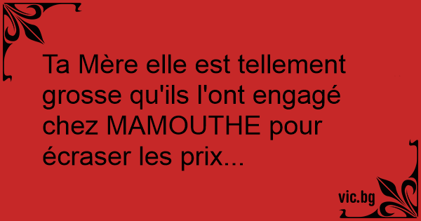 Ta Mère elle est tellement grosse qu'ils l'ont engagé chez MAMOUTHE pour écraser les prix...