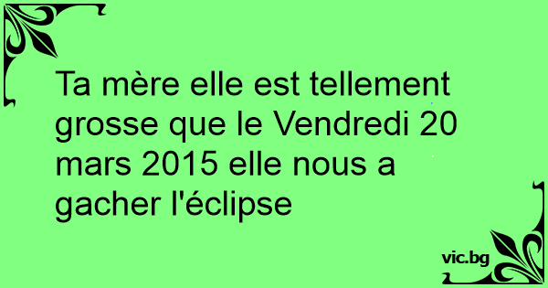 Ta mère elle est tellement grosse que le Vendredi 20 mars 2015 elle nous a gacher l'éclipse