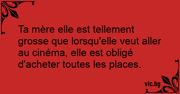 Ta mère elle est tellement grosse que lorsqu'elle veut aller au cinéma, elle est obligé d'acheter toutes les places.