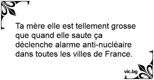 Ta mère elle est tellement grosse que quand elle saute ça déclenche alarme anti-nucléaire dans toutes les villes de France.