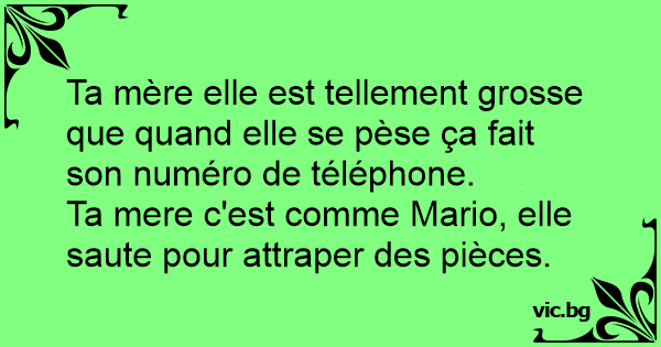 Ta mere c'est comme Mario, elle saute pour attraper des pièces.