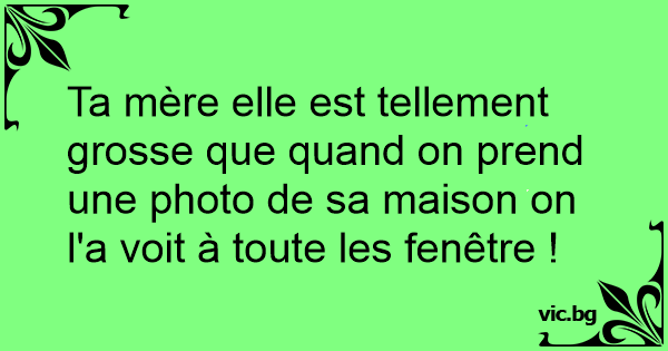 Ta mère elle est tellement grosse que quand on prend une photo de sa maison on l'a voit à toute les fenêtre !