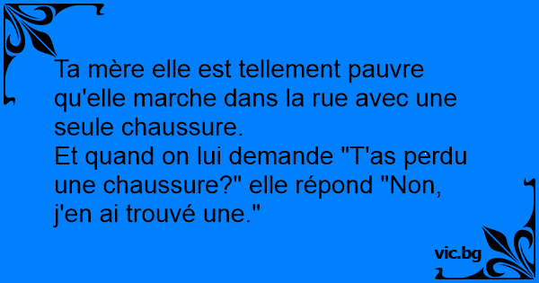 Ta mère elle est tellement pauvre qu'elle marche dans la rue avec une seule chaussure.
