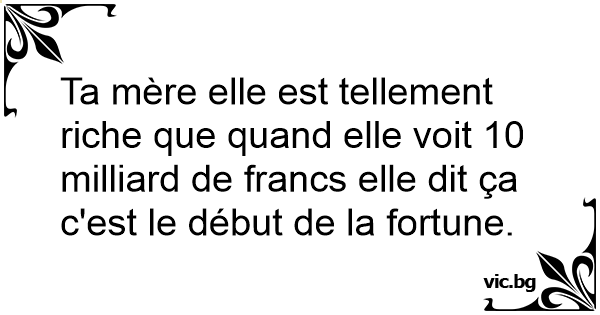 Ta mère elle est tellement riche que quand elle voit 10 milliard de francs elle dit ça c'est le début de la fortune.