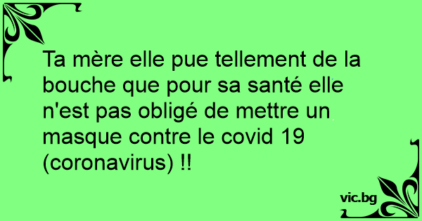 Ta mère elle pue tellement de la bouche que pour sa santé elle n'est pas obligé de mettre un masque contre le covid 19 (coronavirus) !!
