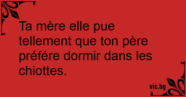 Ta mère elle pue tellement que ton père préfére dormir dans les chiottes.