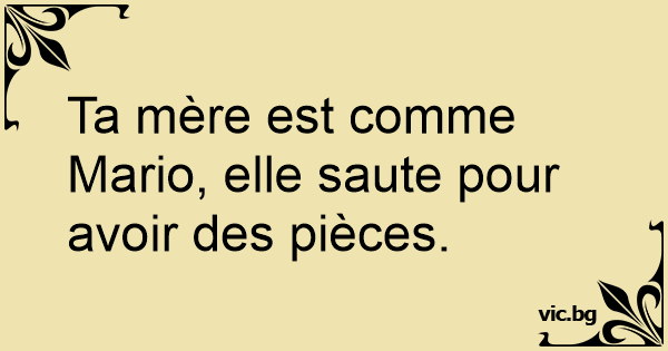 Ta mère est comme Mario, elle saute pour avoir des pièces.