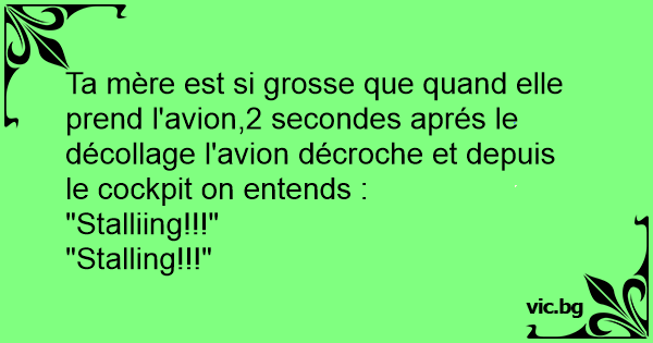 Ta mère est si grosse que quand elle prend l'avion,2 secondes aprés le décollage l'avion décroche et depuis le cockpit on entends :