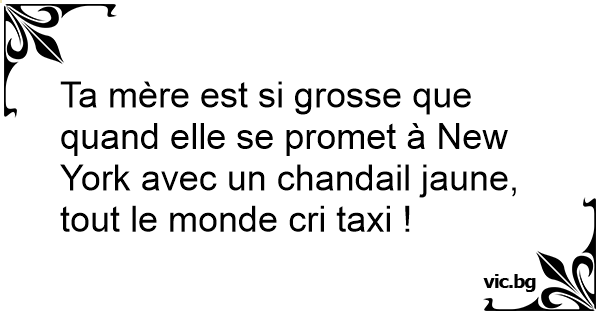 Ta mère est si grosse que quand elle se promet à New York avec un chandail jaune, tout le monde cri taxi !