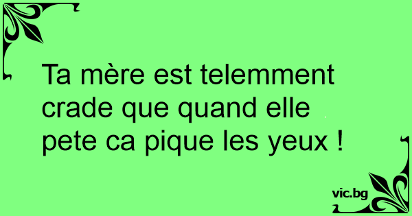 Ta mère est telemment crade que quand elle pete ca pique les yeux !