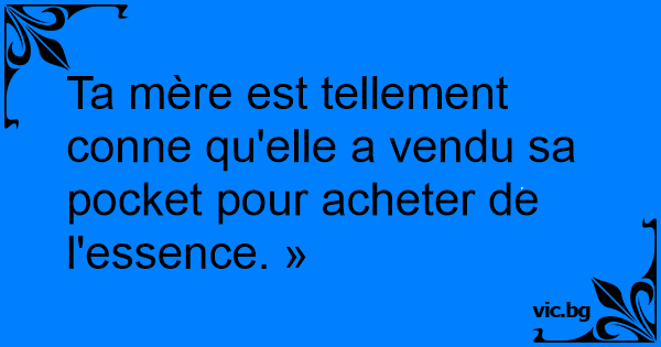 Ta mère est tellement conne qu'elle a vendu sa pocket pour acheter de l'essence. »