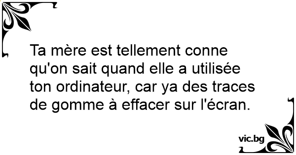 Ta mère est tellement conne qu'on sait quand elle a utilisée ton ordinateur, car ya des traces de gomme à effacer sur l'écran.