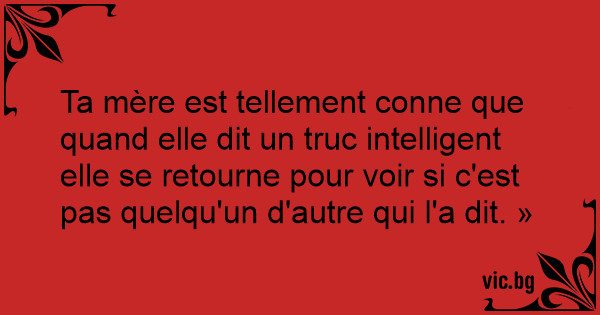 Ta mère est tellement conne que quand elle dit un truc intelligent elle se retourne pour voir si c'est pas quelqu'un d'autre qui l'a dit. »