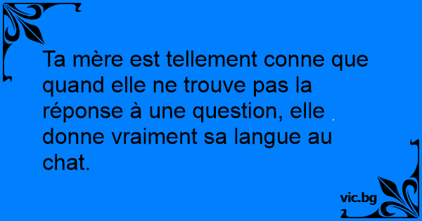 Ta mère est tellement conne que quand elle ne trouve pas la réponse à une question, elle donne vraiment sa langue au chat.
