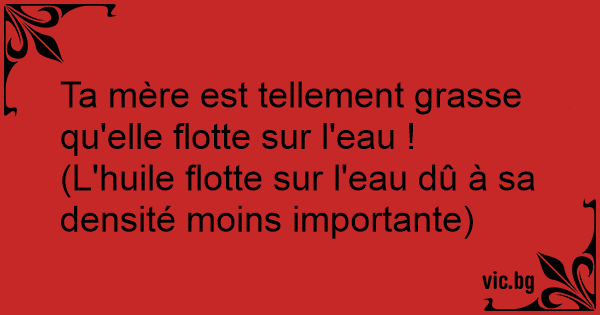 Ta mère est tellement grasse qu'elle flotte sur l'eau !