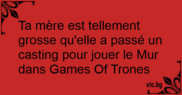 Ta mère est tellement grosse qu'elle a passé un casting pour jouer le Mur dans Games Of Trones