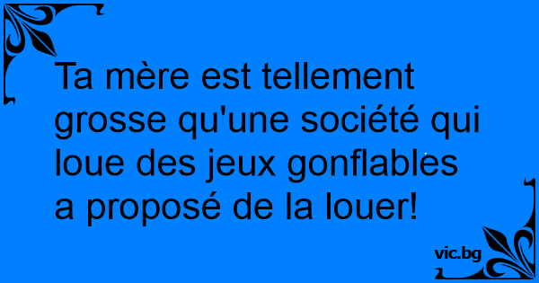 Ta mère est tellement grosse qu'une société qui loue des jeux gonflables a proposé de la louer!
