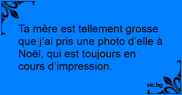 Ta mère est tellement grosse que j’ai pris une photo d’elle à Noël, qui est toujours en cours d’impression.
