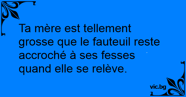 Ta mère est tellement grosse que le fauteuil reste accroché à ses fesses quand elle se relève.