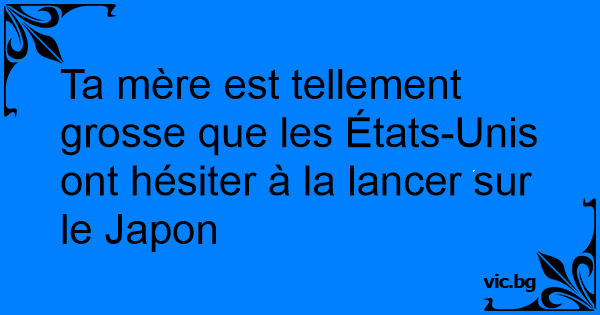 Ta mère est tellement grosse que les États-Unis ont hésiter à la lancer sur le Japon